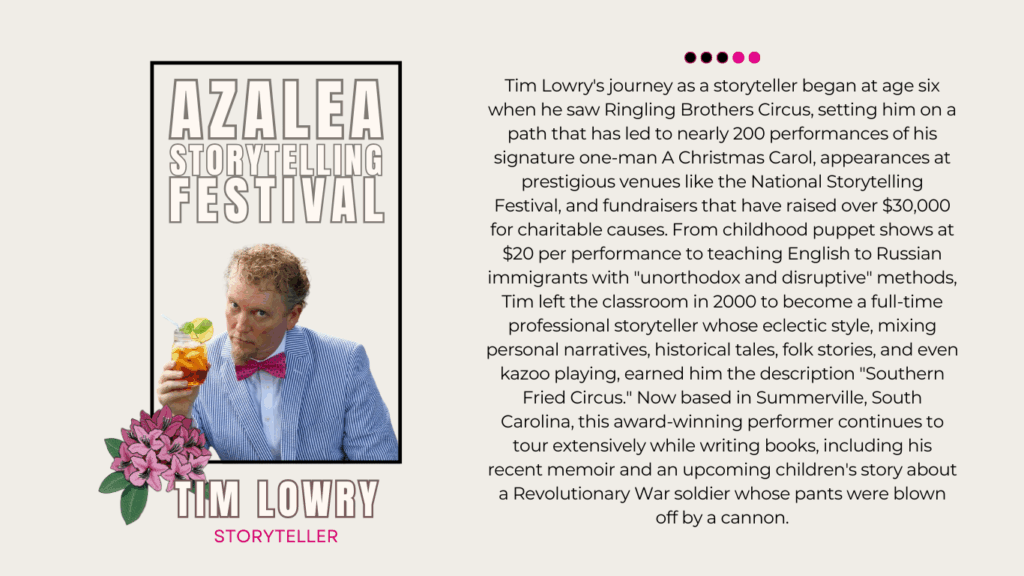 Celebrate the power of story at the Azalea Storytelling Festival, one of the South’s premier storytelling events where stories take center stage! Each spring, audiences gather in LaGrange, Georgia, to experience a full weekend of storytelling with some of the nation’s finest performers.