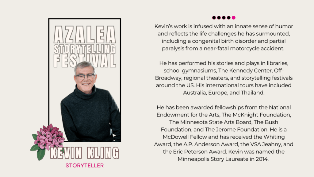 - Kevin Kling – Playwright, performer, and humorist known for his hilarious and poignant tales of everyday life.